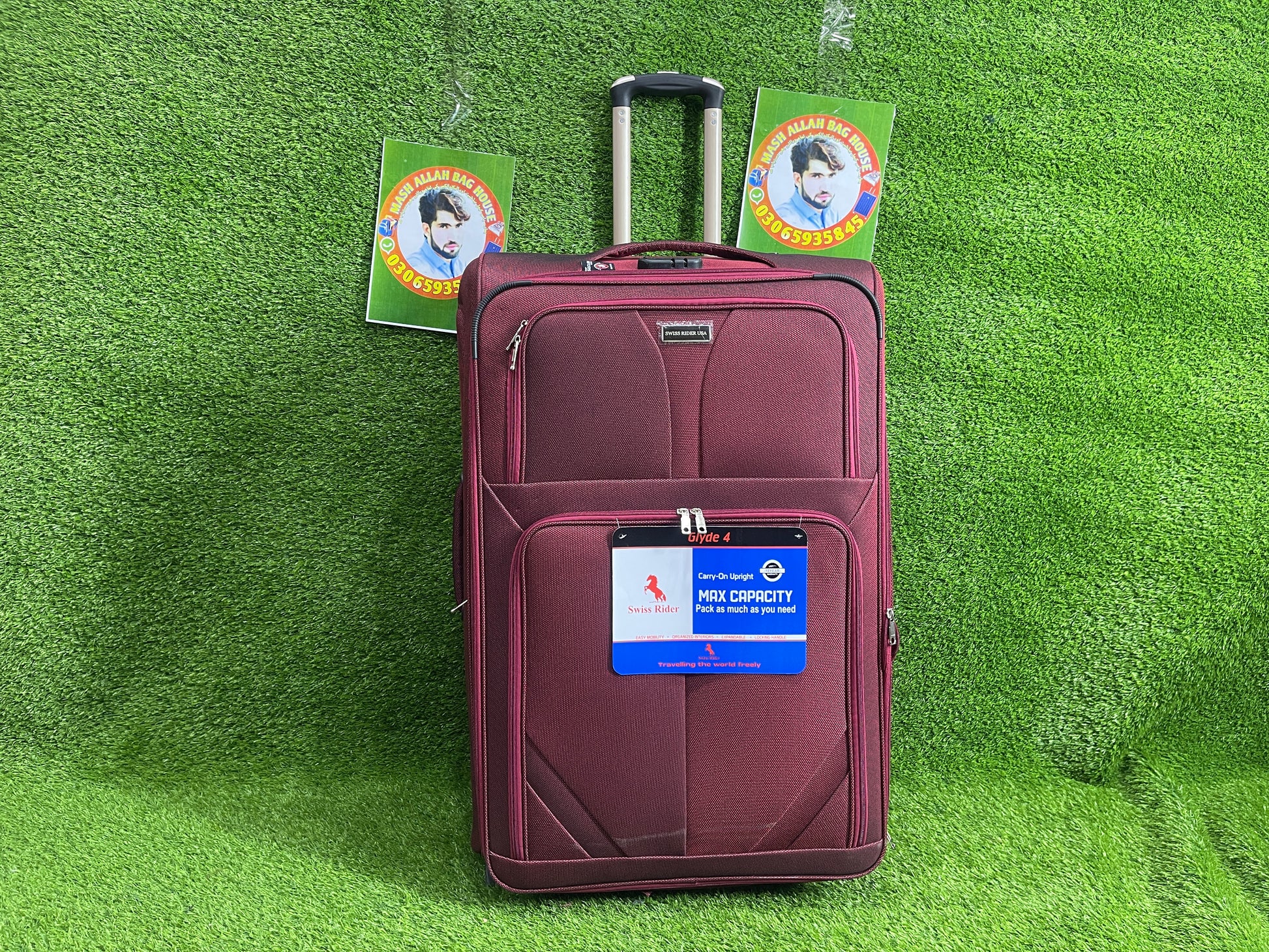 - Explore the SWISS RIDER USA soft-sided suitcase, crafted using recycled polyester for an eco-friendly approach. On the exterior, it features two front pockets for convenient storage. For security, it comes with a TSA combination lock with a cable to safeguard your belongings during travel. The telescopic handle allows for easy maneuvering, and the sturdy handle enables handheld carrying. Inside, two zip pockets help you organize your items. With a capacity suitable for a one-week stay, this SWISS RIDER USA soft-sided suitcase is perfect for short trips.